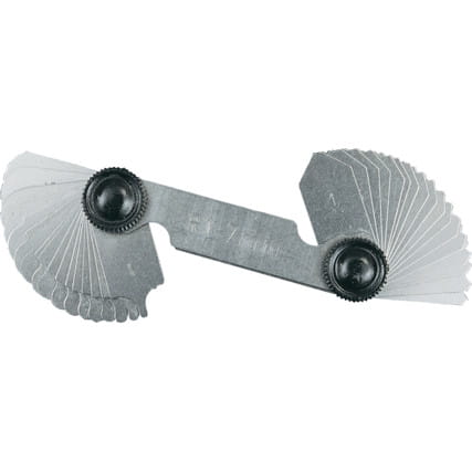 Wykonane z utwardzonej i gładko wykończonej stali. Ostrza wycięte dokładnie dla optymalnej precyzji pomiaru wewnętrznego i zewnętrznego promienia. Zawarte w stalowym opakowaniu.Zakres rozmiarów:
