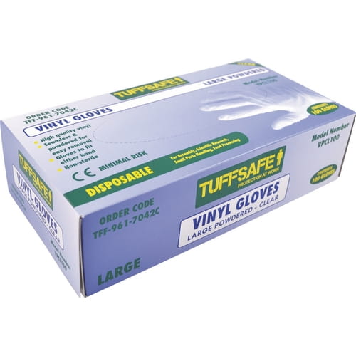 VINYL DISP' POWDERED GLOVES CLEAR (XL) (opak-100) Tuffsafe