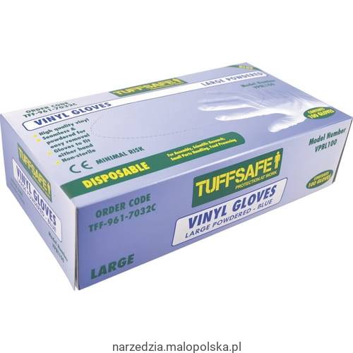 VINYL DISP' POWDERED GLOVES BLUE (M) (opak-100) Tuffsafe TFF9617031B