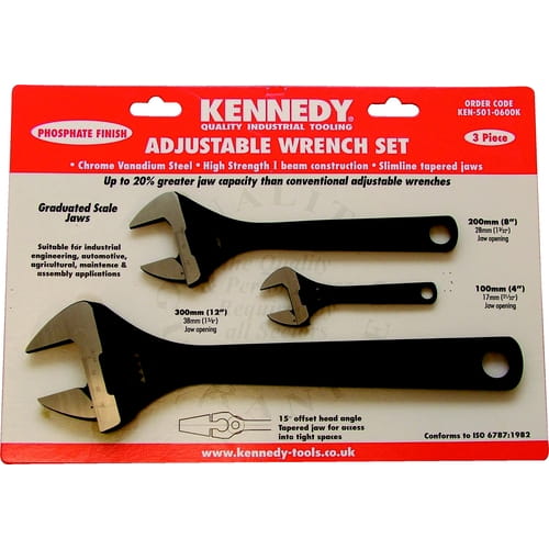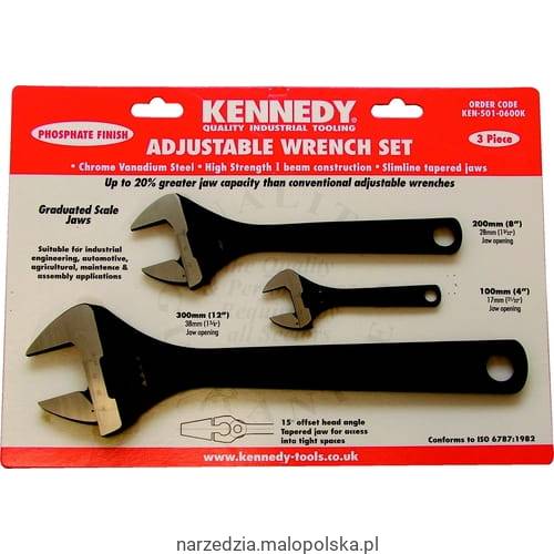 Zestaw kluczy nastawnych 100mm 200mm 300mm czernionych 4" 8" 12" z podziałką Kennedy KEN5010600K