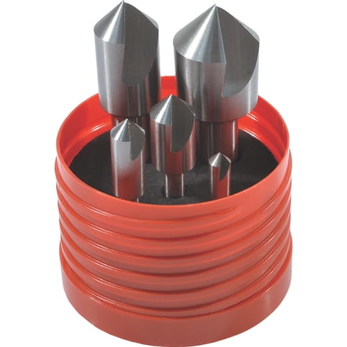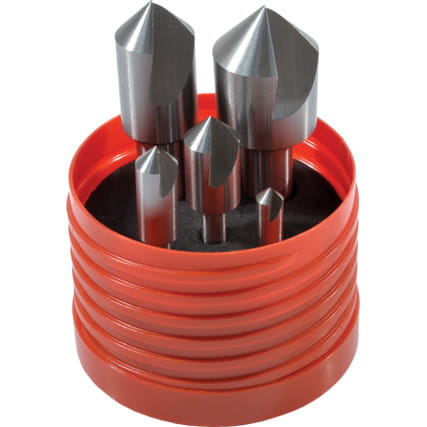 Gama jakościowych jednoostrzowych pogłębiaczy dostępnych w dziewięciu indywidualnych rozmiarach i jako zestaw pięciu sztuk do operacji gratowania i fazowania większości metali i tworzyw sztucznych. Wykonane ze stali szybkotnącej celem uzyskania dobrej trwałości i wydajności. Wewnętrzny Kąt 90°.Zestaw 5-sztukowy zawiera: