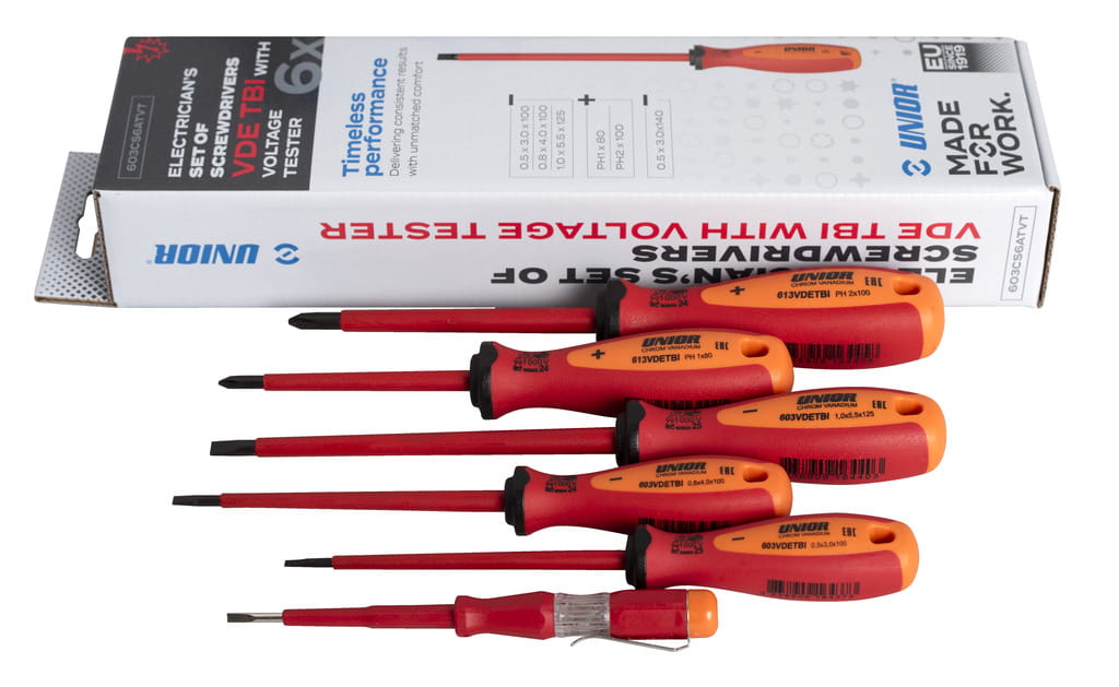 Zestaw wkrętakóww VDE TBI z próbnikiem napięcia /6 Unior (617043) 603CS6TVDETBI